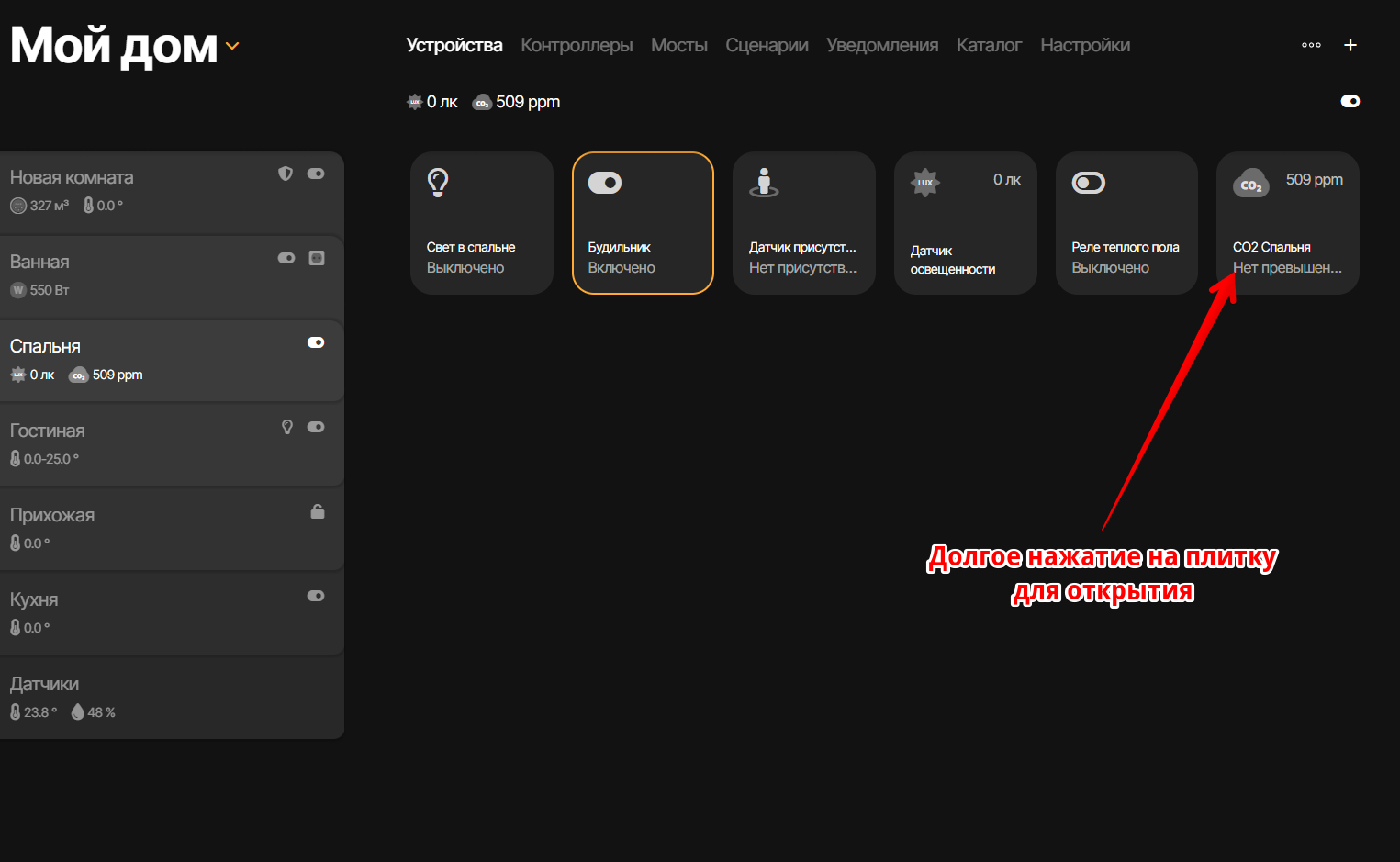 Для просмотра графиков конкретной характеристики устройства, вам необходимо открыть устройство и длительно нажать на характеристику, график которой вы хотите посмотреть