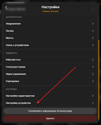 Далее выбрать пункт "Настройки устройства". Это откроет окно настроек параметров Bed.box